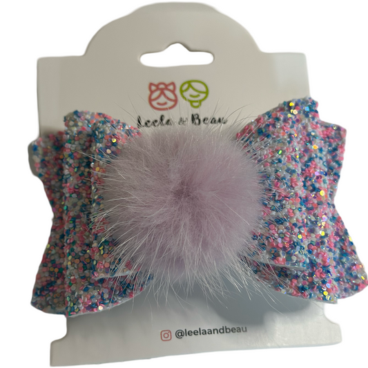 Lazo Glitter Azul Lila y Rosa con Pompom