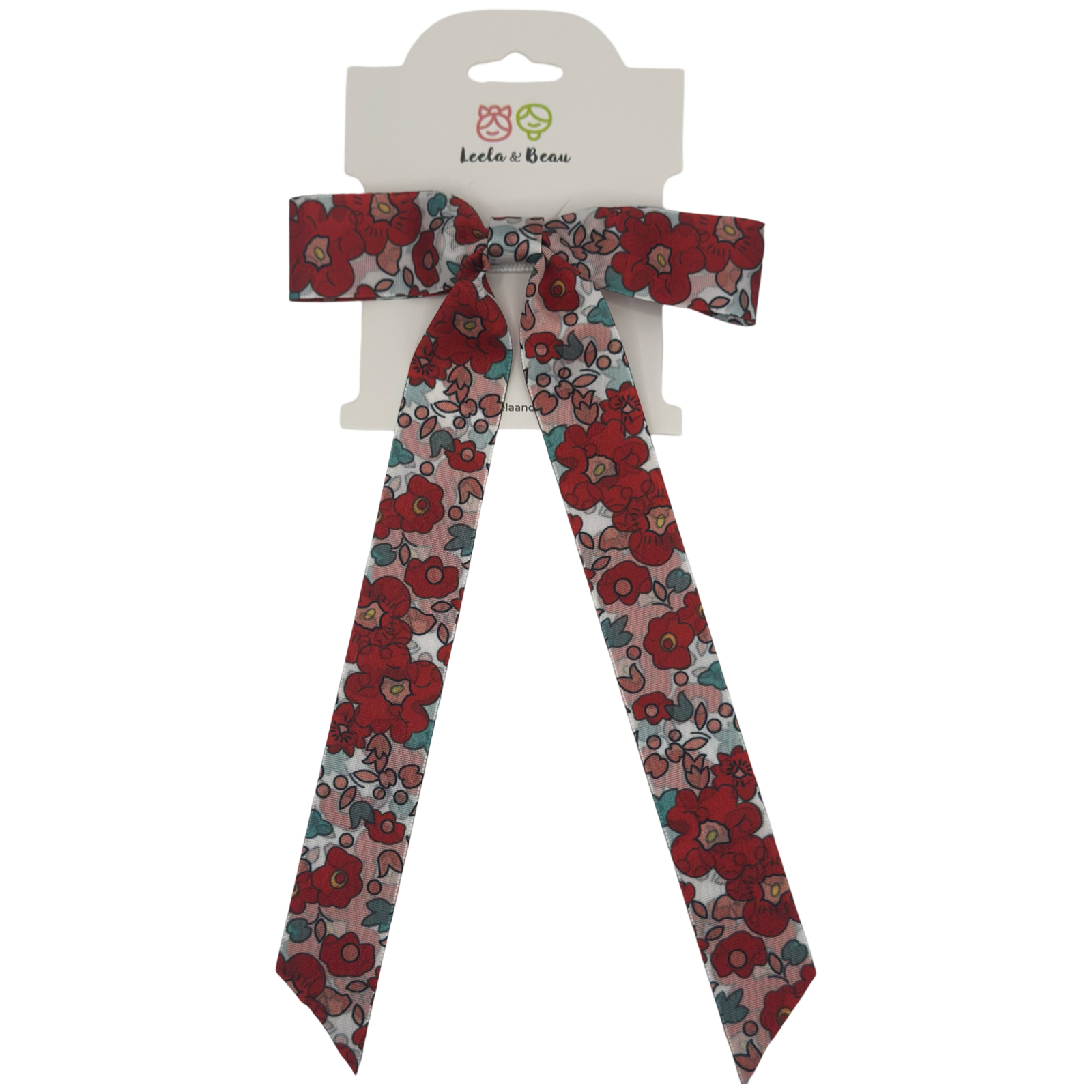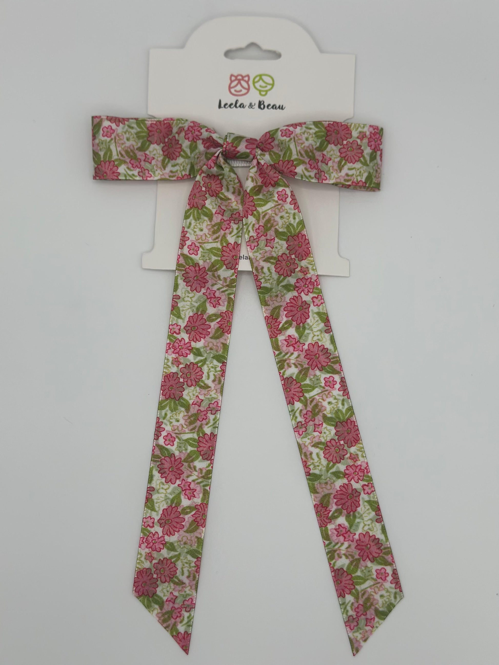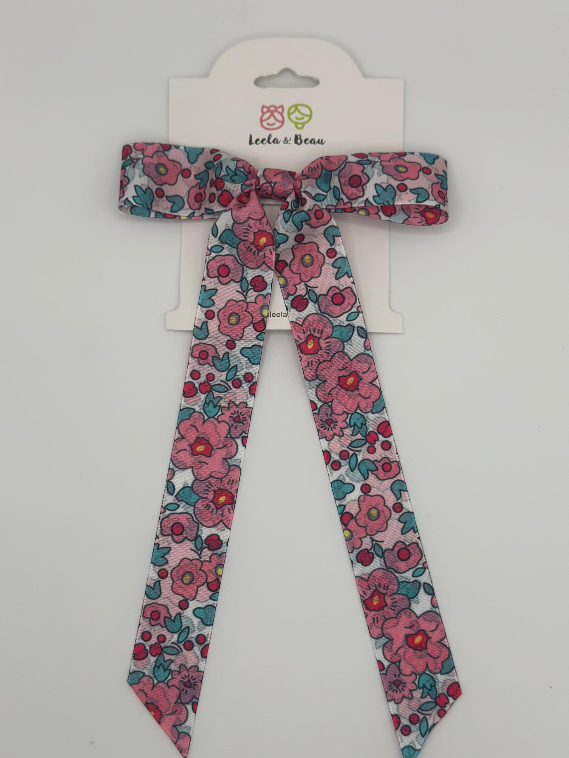 Dale un toque romántico y elegante a cualquier peinado con este hermoso lazo de tela con estampado floral. Con un diseño clásico y femenino, este accesorio es perfecto para realzar el look de niñas y mujeres de todas las edades.