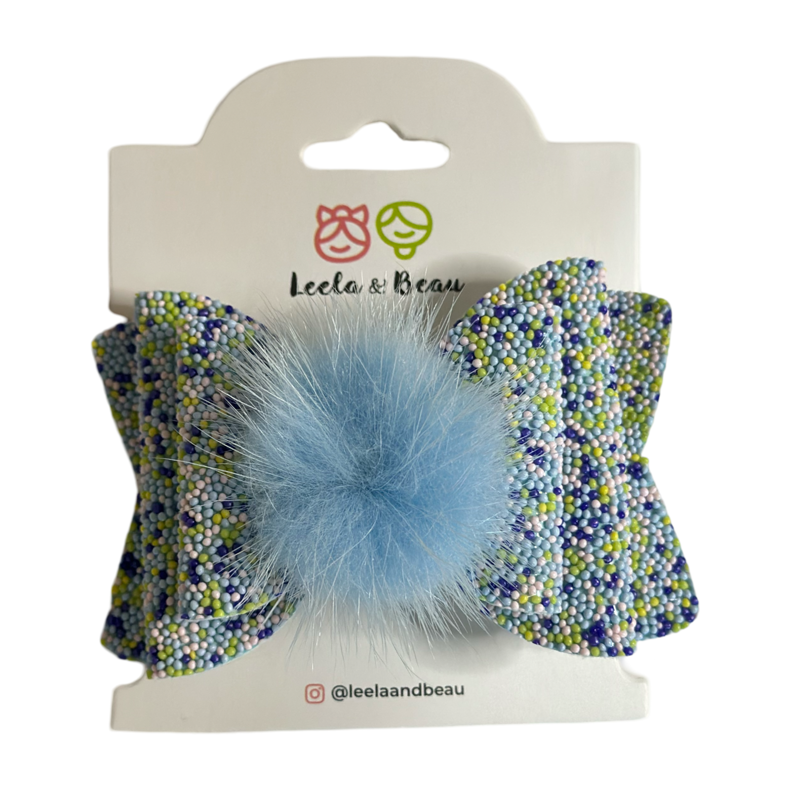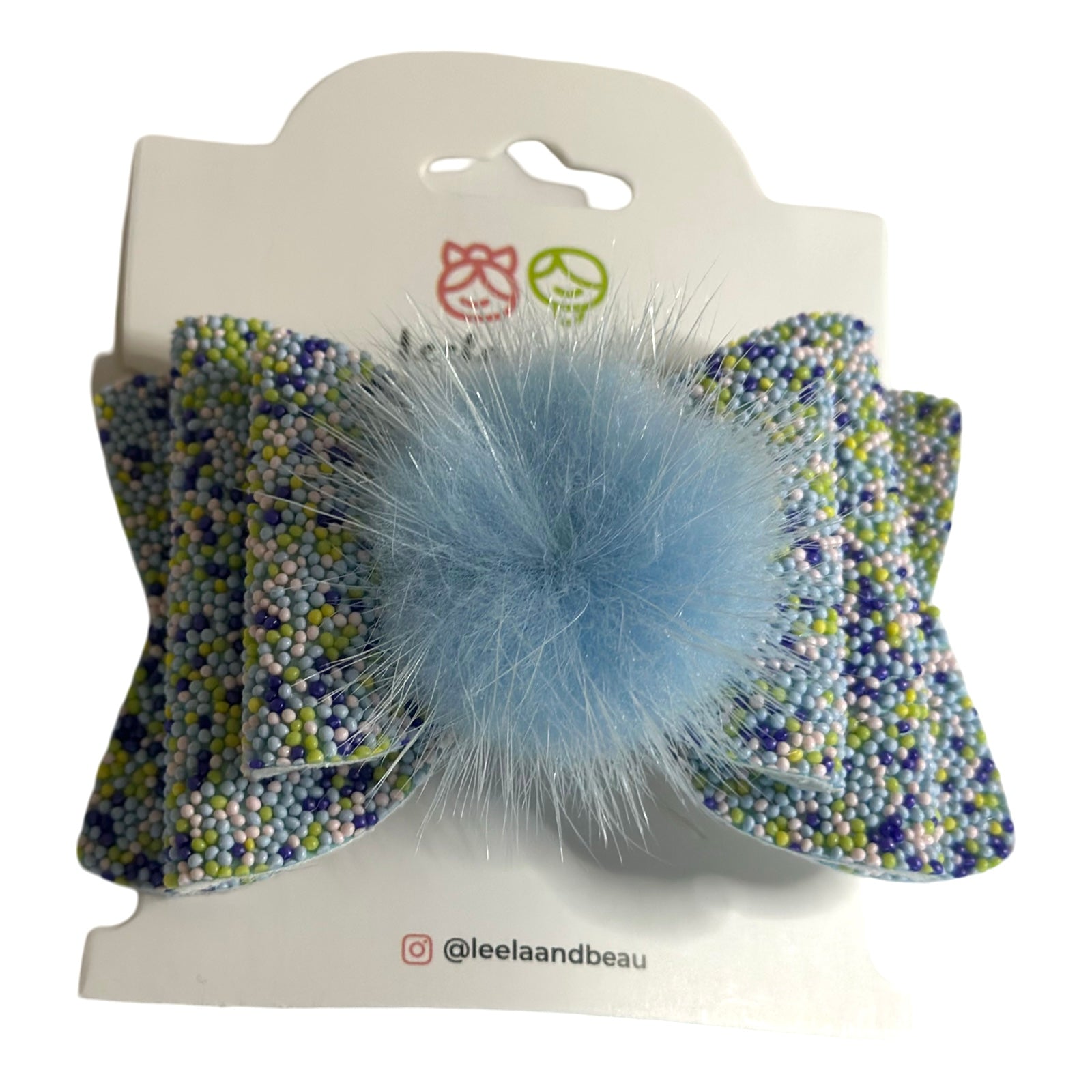 Este lazo está diseñado con un llamativo efecto confetti y un suave pompón en el centro, agregando un toque único y encantador a cualquier look. Cuenta con un clip antideslizante para una sujeción segura y cómoda.