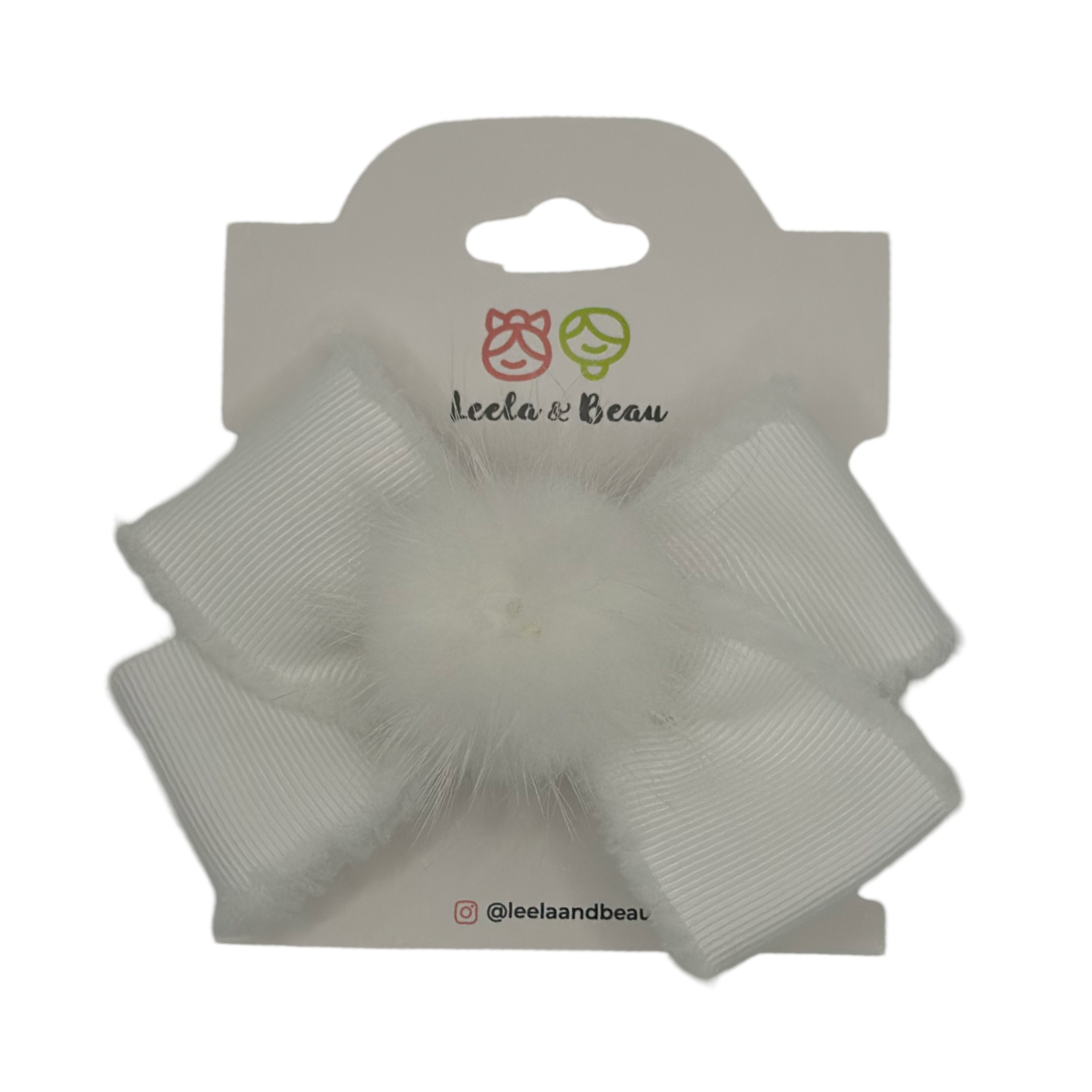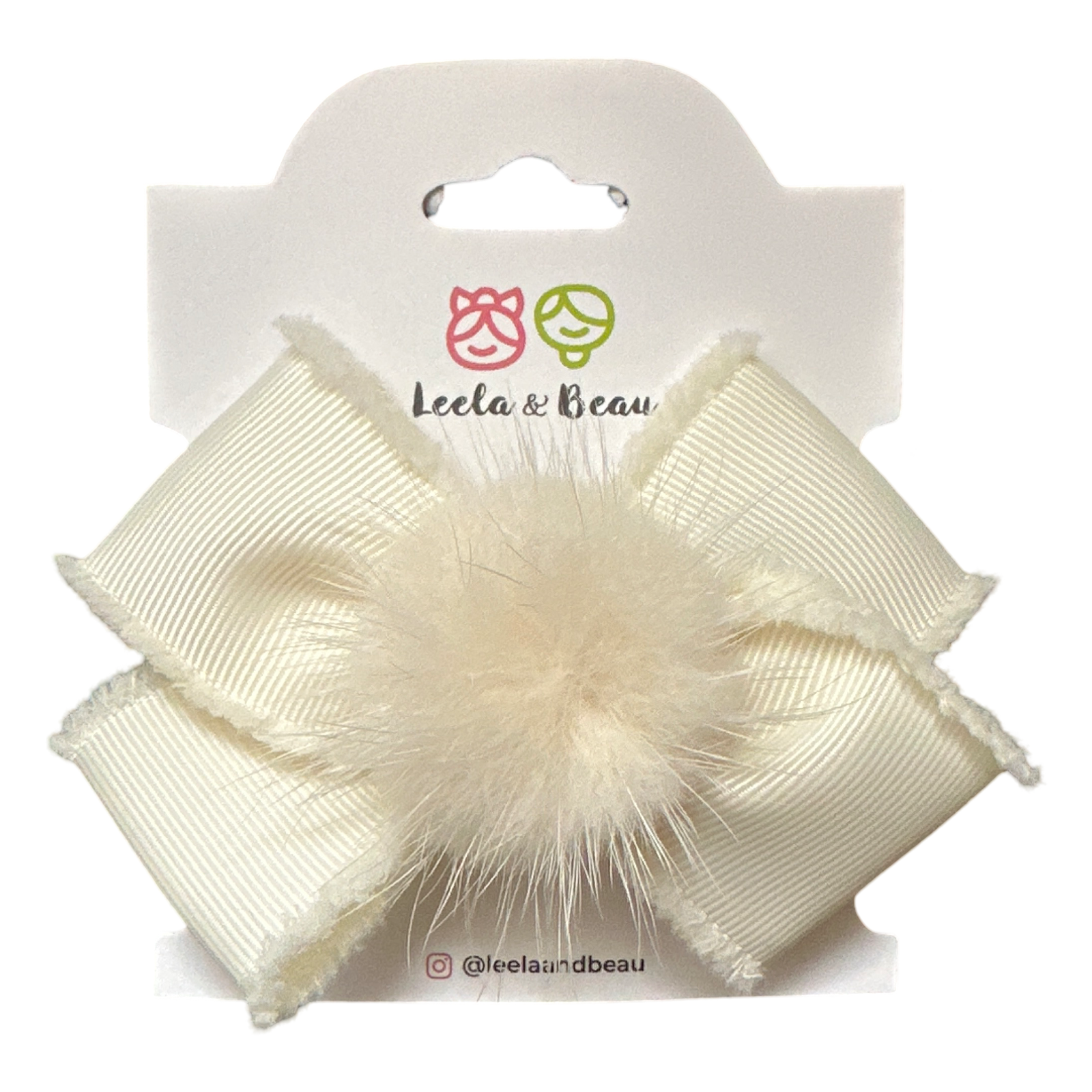 Este Lazo en Gros con Pompón es el accesorio perfecto para añadir un toque elegante y sofisticado al look de tu pequeña. Confeccionado en cinta grosgrain de alta calidad y delicados bordes deshilachados, su diseño se realza con un pompón suave y esponjoso en el centro, aportando un acabado encantador y único.