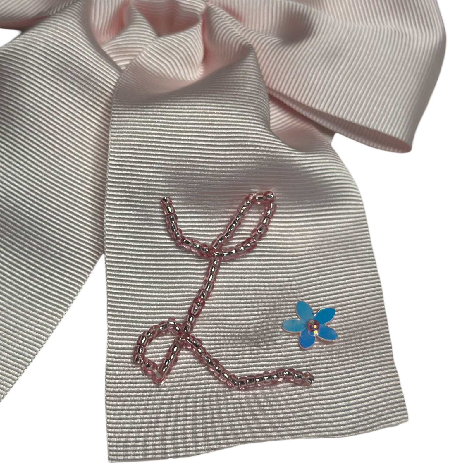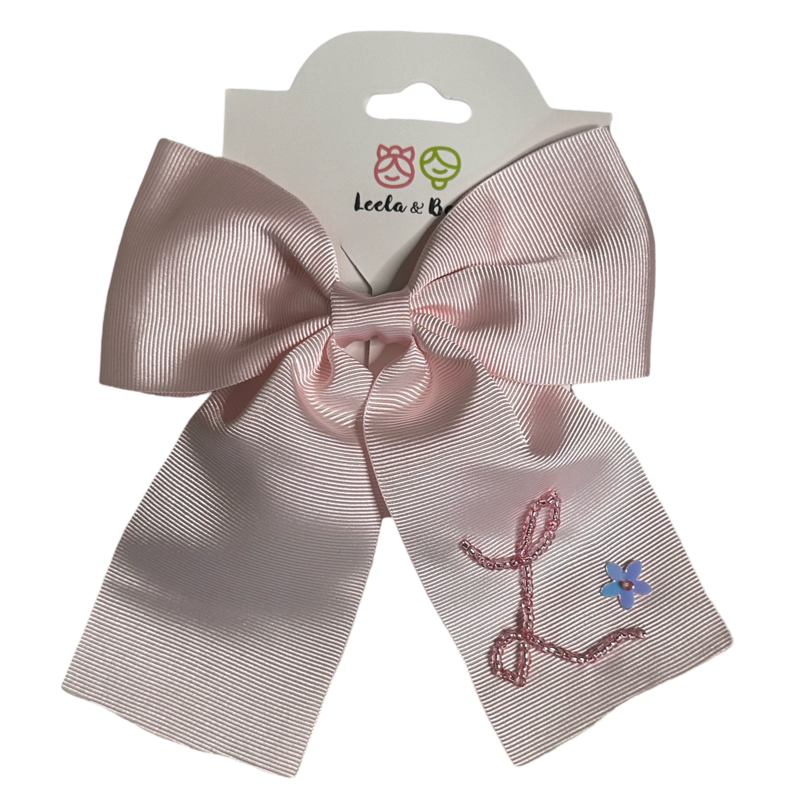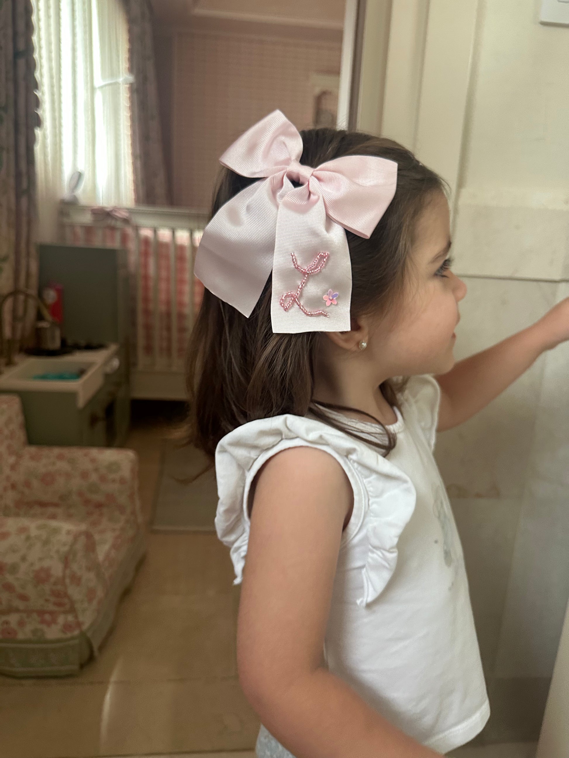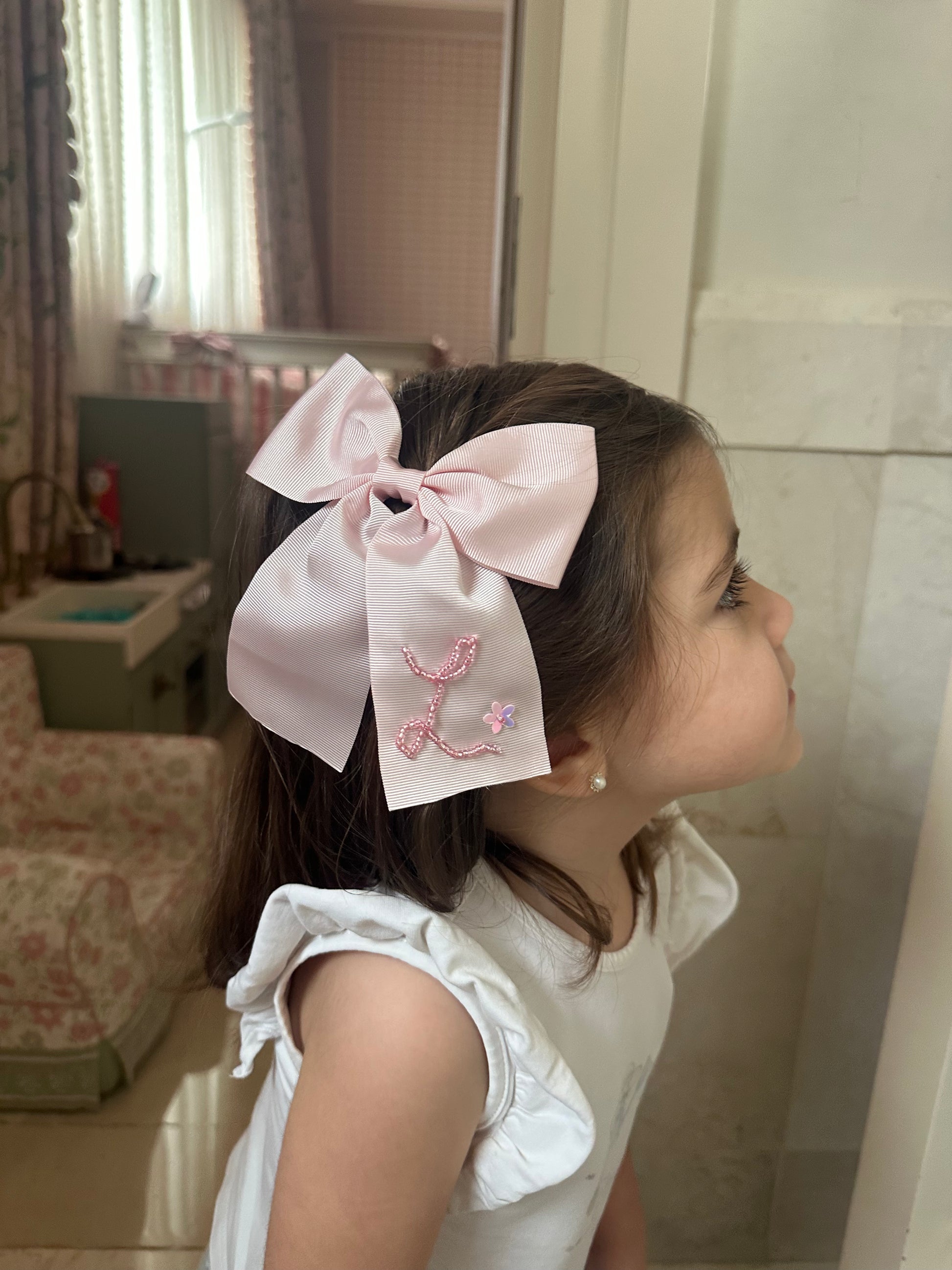 Dale un toque único y especial al look de tu pequeña con nuestro lazo personalizado. Hecho a mano con una delicada cinta de grosgrain en un suave tono pastel, este accesorio es perfecto para cualquier ocasión.